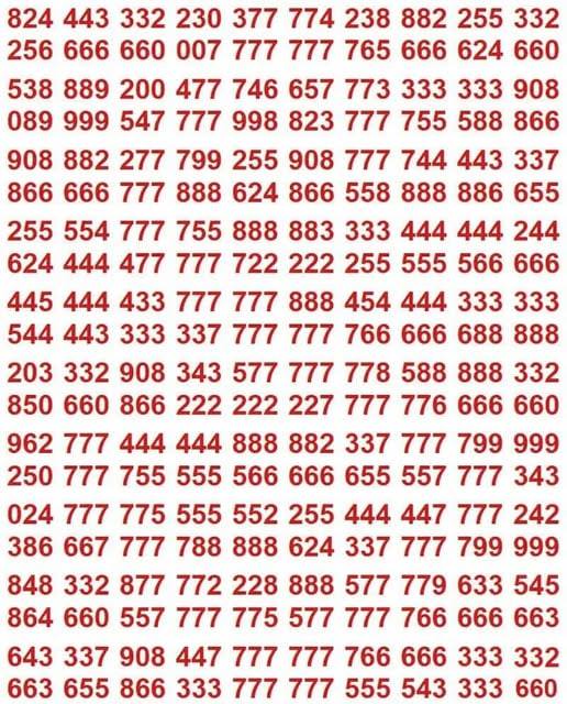 Alleen de meest oplettende spelers vinden de verborgen letter binnen 15 seconden. Lukt het je, dan heb je een uitzonderlijk hoog IQ! Een letter verborgen tussen de cijfers – niet zo makkelijk als het lijkt. Op het eerste gezicht lijkt de afbeelding gewoon een rij cijfers naast elkaar te tonen. Maar als je
