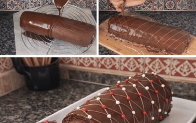 Deze opgerolde chocolade-praline kerstboomstam bestaat uit een zachte cacaobiscuit, een romige pralinecrème en een glanzend chocoladeglazuur. Een betrouwbaar en elegant…