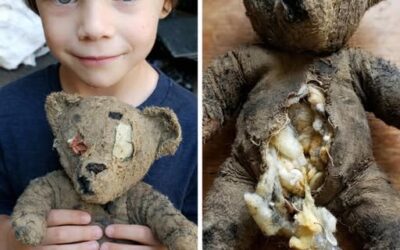 Toen mijn zoon een vieze, eenogige teddybeer half begraven in het gras vond, wilde ik hem niet mee naar huis…