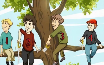 Stel je een oplossing voor, maar een intrigerende situatie: vier kinderen zitten in de takken van een boom. Anderen kunnen…