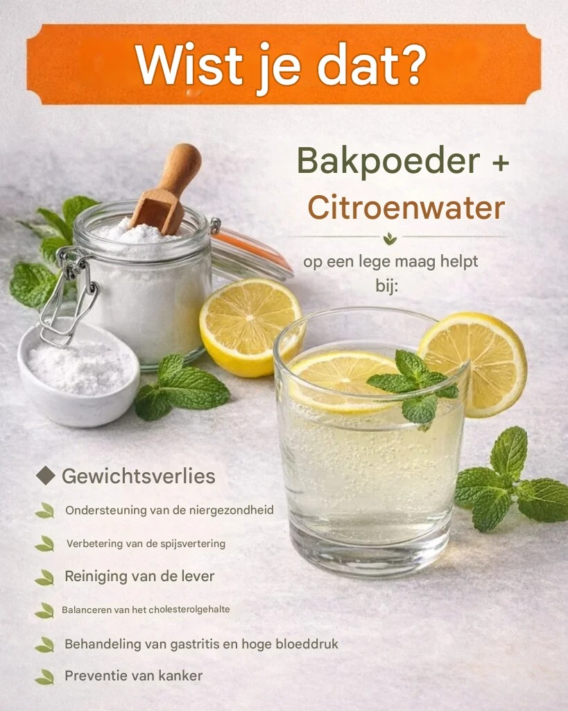 Natuurlijke huismiddeltjes zijn weer helemaal in de mode, en een van de meestbesproken combinaties online is citroenwater gemengd met bakpoeder . Veel mensen beweren dat dit simpele drankje de spijsvertering kan verbeteren, het lichaam kan ontgiften, gewichtsverlies kan ondersteunen en de pH-waarde van het lichaam in balans kan brengen.