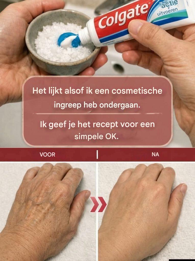 Veel mensen zijn verrast als ze horen dat een simpel huishoudelijk product zoals tandpasta kan helpen bij het verminderen van ouderdomsvlekken, rimpels en andere tekenen van veroudering op handen en armen. Hoewel het geen wondermiddel is ter vervanging van professionele behandelingen, heeft het eigenschappen die de huid kunnen verhelderen en fijne lijntjes kunnen verzachten bij correct gebruik. Waarom tandpasta werkt op de huid: Tandpasta bevat ingrediënten zoals: zuiveringszout, fluoride, milde schuurmiddelen en antibacteriële stoffen. Deze bestanddelen kunnen helpen bij het exfoliëren van dode huidcellen, het oplichten van verkleuringen en het verbeteren van de algehele huidtextuur. Stapsgewijs huismiddeltje: Ingrediënten: Een kleine hoeveelheid gewone witte tandpasta. Optioneel: een paar druppels citroensap (voor extra verheldering). Instructies:
