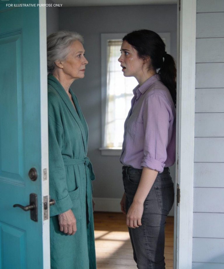Ze leek ontspannen, haar haar nog nat, en ze hield een kopje uit onze keuken vast. Ze glimlachte beleefd, alsof ik degene was die haar stoorde.