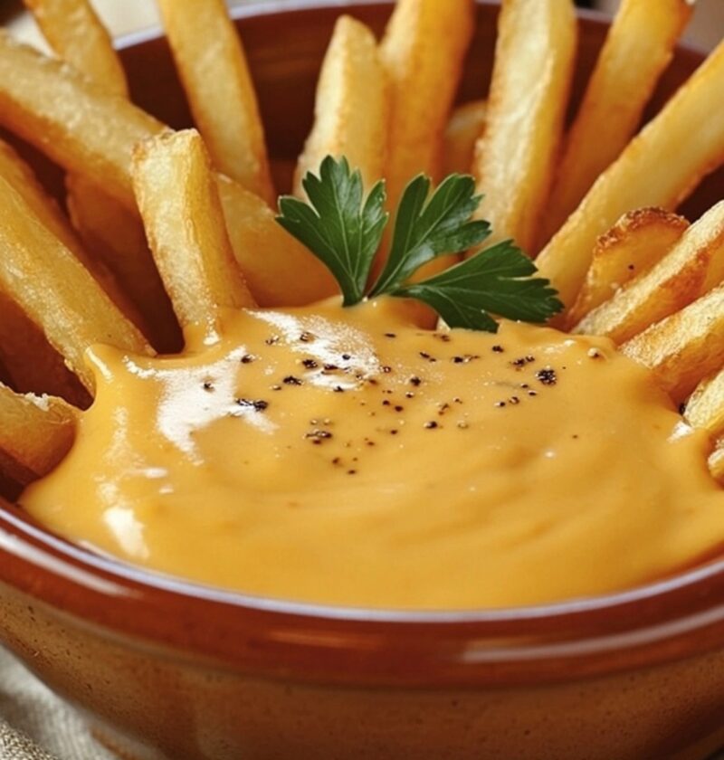 Een heerlijk romige en glanzende kaassaus, speciaal voor over je frietjes.