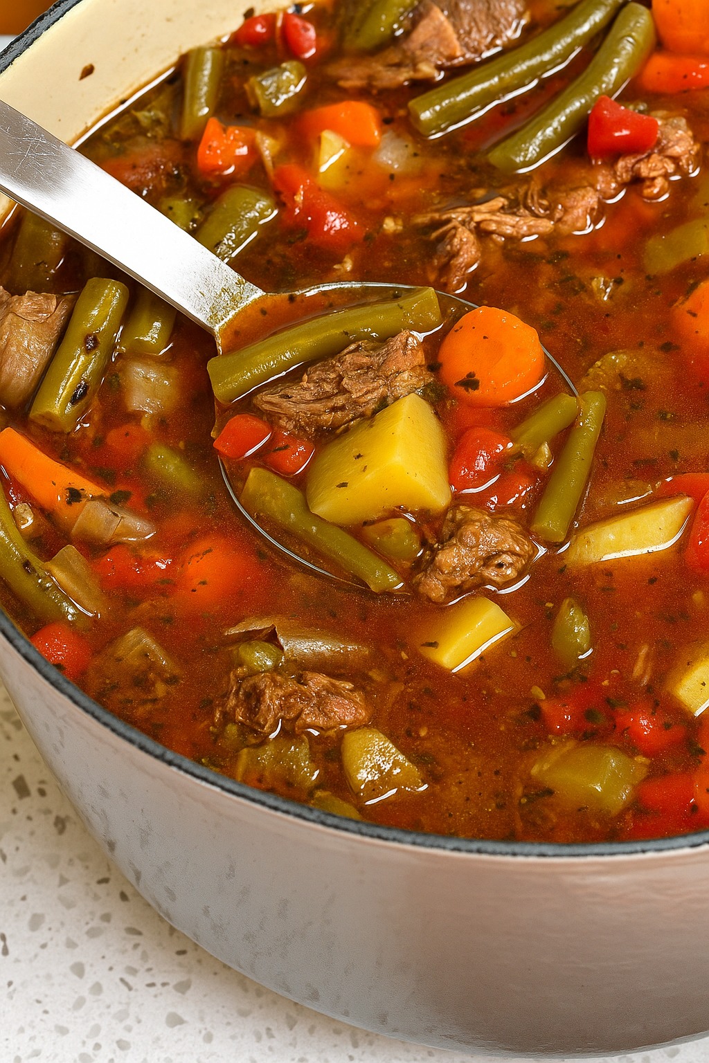 Verwarm je ziel met deze heerlijke groente- en rundvleessoep, perfect voor frisse dagen.