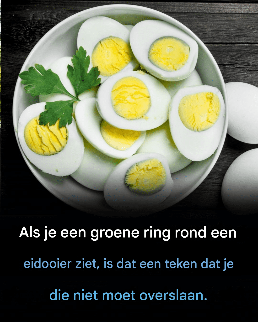 Als je tot de mensen behoort die hun eieren het liefst hardgekookt eten, dan is je vast wel eens die groene ring rond de dooier opgevallen.